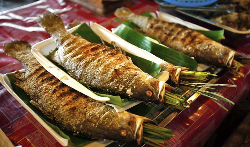 Đặc sản Mộc Châu càng phong phú hơn nhờ món cá suối nướng. Cá suối nướng Mộc Châu là món ăn khoái khẩu của nhiều du khách, nên nếu đến muộn thì có thể bạn sẽ không còn cơ hội thưởng thức món ăn này. Những chú cá được người dân bắt lên từ khu vực suối ở đây, chả ai biết tên nên gọi chung là cá suối. Cá được đem đi rửa sạch, mổ bụng lấy ruột và mật, rồi ướp các loại gia vị như mắc khén, gừng, sả, ớt… sau đo dùng thanh tre kẹp nướng lên bếp than chừng 15 phút tới khi cá vàng ruộm là có thể dùng được. Cá suối ở đây tuy bé, nhưng nướng lên ăn giòn tan, không bị tanh mà có thể ăn cả thịt lẫn xương, hương vị thơm nồng hấp dẫn. Khi ăn nhớ kèm theo các loại rau sống như xà lách, rau mùi, húng quế, chấm nước mắm thơm thì món cá suối sẽ càng thêm tuyệt hảo.