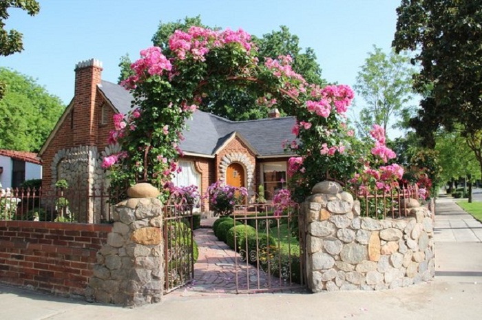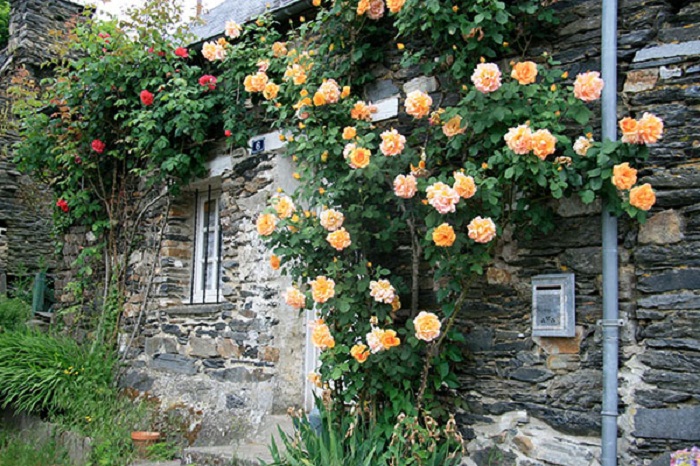 Hoa hồng leo làm cho những bờ tường đá khô cứng trở nên thật thi vị, đầy chất thơ.