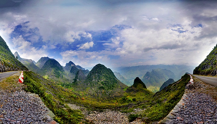 Xe dừng chân trên đỉnh Mã pí lèng, phóng tầm mắt nhìn xung quanh Cao nguyên đá được bao phủ bởi một màu xanh mơn mởn của cây cối. Những mỏm đá tai mèo xù xì, lởm chởm như khoác trên mình chiếc áo mới. Dưới chân núi, bạt ngàn những nương ngô xanh ngát cho người ta quên đi cái khô cằn, hiểm trở của xứ sở đá.