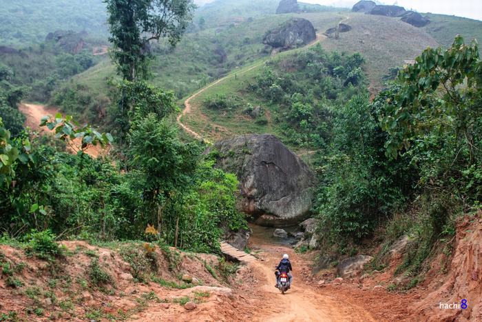 Những con đường đất nhuộm một màu đỏ quánh, nằm vắt qua những dãy núi và cứ càng lên cao thì lại càng dốc cheo leo; muốn vượt qua không chỉ cần sức lực mà còn là cả sự kiên trì để đến được với đồn biên phòng của bộ đội Pha Luông. Ở đây sau khi dùng một bữa cơm với các anh bộ đội, trình giấy phép và giấy tờ tùy thân, được những người lính nhắc nhở về đường đi lối về, bạn sẽ bắt đầu hành trình với đầy sự hứng khởi. Men theo con đường là những lối mòn nhỏ, ghé qua những nương đồi vẫn còn vương sương sớm, mặt trời mới chỉ le lói trên những rặng cây, thi thoảng lại được ngắm những nhành hoa nở ra tìm biếc ngay dọc sườn đồi.