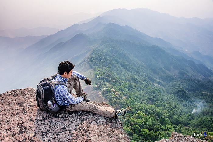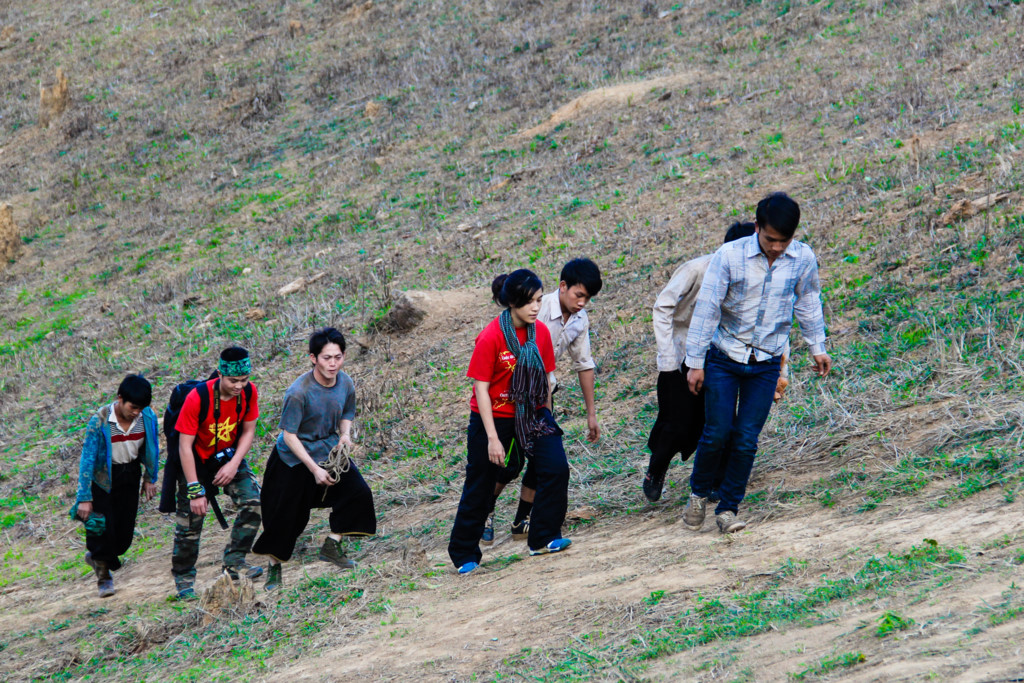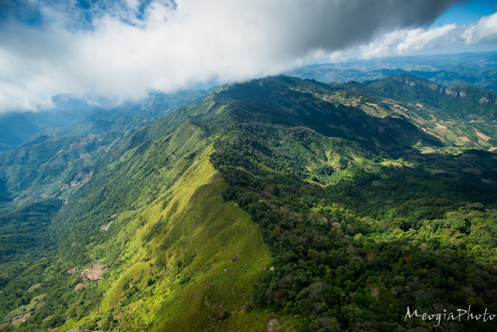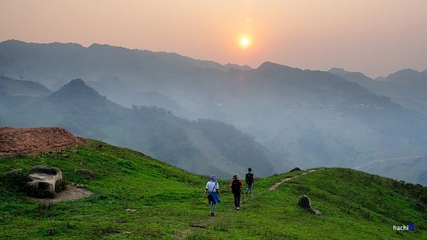Sau nửa giờ đồng hồ leo bộ là một không gian rộng lớn và thoáng đãng được mở ra, những tảng mây mù đặc quánh cũng đã trôi x, trước mắt chỉ còn là ánh mặt trời chiếu rọi khắp muôn nơi. Trên các sườn đồi, người dân đi làm nương làm rẫy, cần mẫn và chăm chỉ.