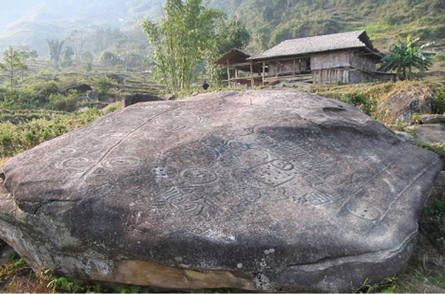 Quần thể di tích bãi đá cố có khoảng 8 phiến đá lớn và 2 cự thạch (phiến đá cực lớn). Có phiến đá như hình ghế ngồi, có phiến đá lại như chiếc bàn cờ...Trong đó đặc biệt hơn cả là tấm cự thạch lớn nhất, trên đó có khoảng 80 hình vẽ và 80 vũng lõm khác nhau. Những ký tự được khắc trên đá có hình tròn, hình ruộng bậc thang, hình người, hình bàn chân...Mà theo các nhà khoa học chúng được khắc bằng những dụng cụ thô sơ như búa, rìu của những người tiền sử.