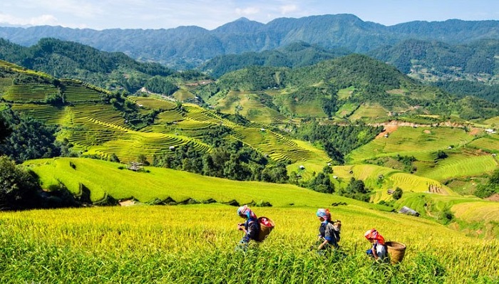 Những nếp nhà sàn xen giữa những thửa ruộng bậc thang trùng điệp nối tiếp nhau