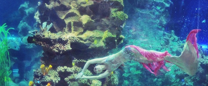 Đặc biệt vào các khung giờ cố định trong ngày du khách sẽ được xem những màn biểu diễn hấp dẫn cho cá ăn, hay màn bơi lội cùng những chú cá khổng lồ của những nàng tiên cá xinh đẹp.