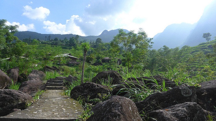 Bãi đá cổ với nhiều phiến đá đen