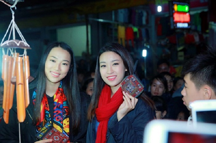 Hoa hậu Mỹ Linh hào hứng tại chợ đêm Cốc Pài