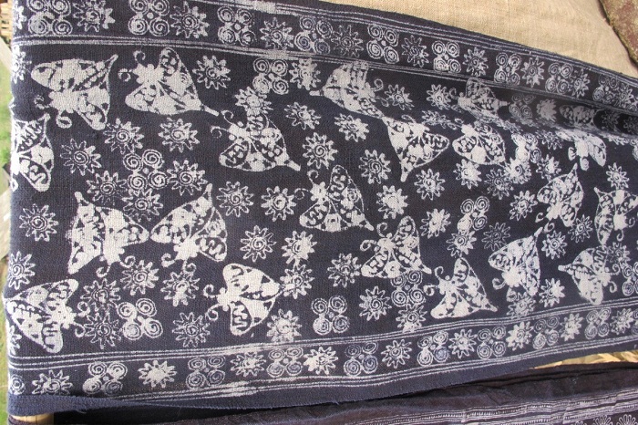 Hoa văn vẽ sáp ong trên vải sau khi đã nhuộm chàm