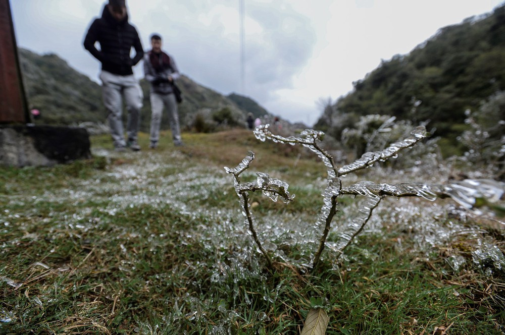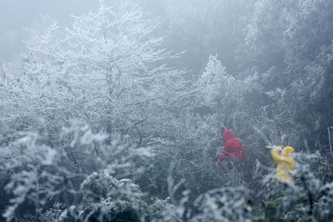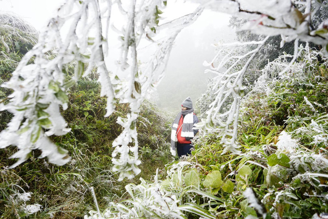 Băng giá đã xuất hiện trên đỉnh Fansipan (Sapa)