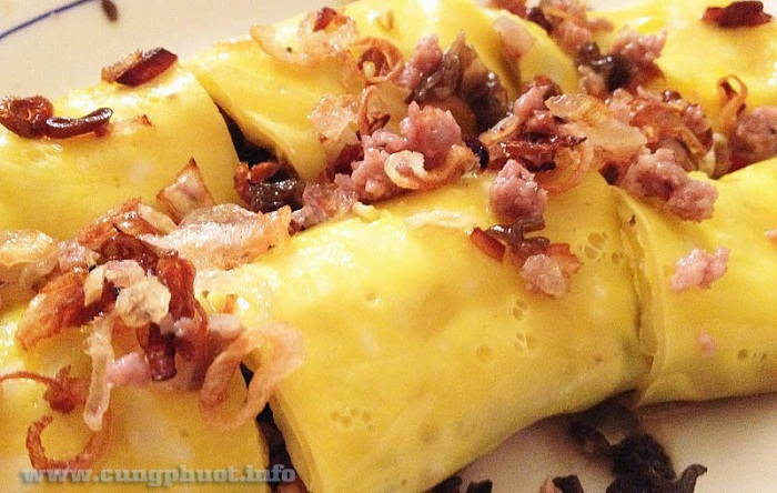 Bánh cuốn nhân mộc nhĩ, thịt băm