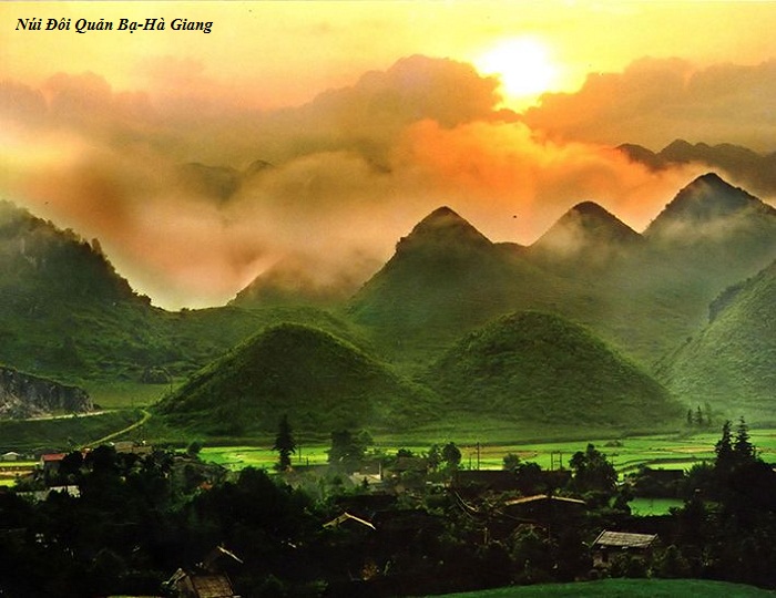 “ Ai về thăm quê hương tôi nơi biên cương là đây, có đường đi lên mây lên tới cổng trời. Đây Hà Giang, đây Hà Giang quê chúng tôi...” Tôi đến Quản Bạ trong một sáng mờ sương, đứng trên cổng trời nhìn xuống Núi Đôi như bầu ngực căng tròn, xanh mơn mởn của người con gái đang độ xuân thì...