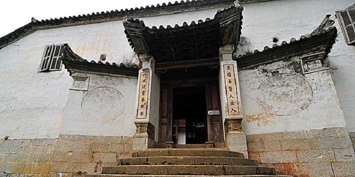 Phía trước cửa nhà có chiếc cổng đá gồm 15 bậc, được trạm khắc tinh xảo. 2 bên cổng được khắc câu đối bằng chữ Hán. Hai câu đó vẫn như lời răn dạy của con cháu đời sau với nghĩa: gia đình tích đức người hiền sẽ đến, cửa rộng mở đón khách về thăm