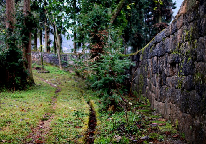 Đến thăm dinh thự vua Mèo du khách đi qua những đoạn đường được lát bằng những phiến đá hoa cương lớn, vuông vức. Phía trước dinh thự là những hàng cây Sa Mộc có tuổi đời hàng trăm tuổi.