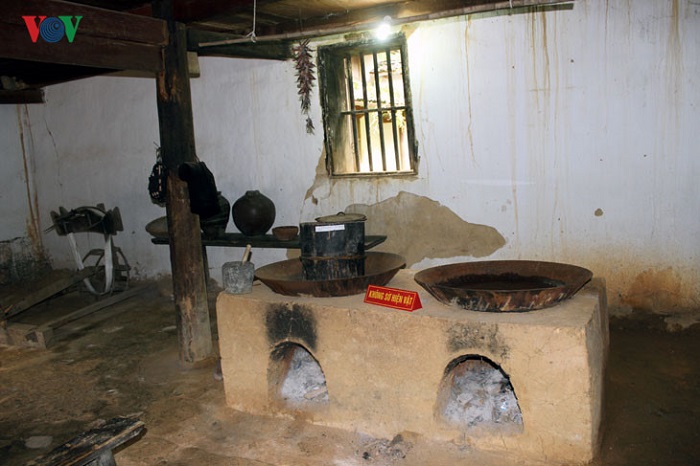Bếp lò và một số vật dụng trong gian bếp vẫn còn khá nguyên vẹn