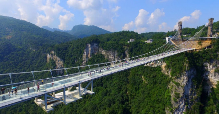 Tiếp tục, Quý khách vượt qua 999 bậc thang thẳng đứng để lên đến Cổng Trời - nơi giao thoa giữa trời và đất. Tham quan Sạn Đạo Kính (Cầu kính – con đường gác kính trên vách đá)