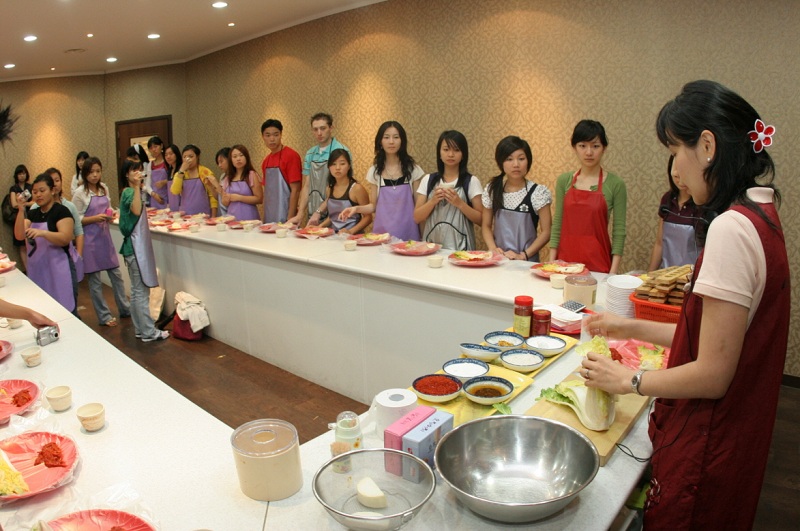 Sau bữa sáng, đoàn trả phòng và tham gia lớp học Làm kim Chi tại làng Hàn Quốc và mặc đồ truyền thống Hàn Quốc – Hanbok.