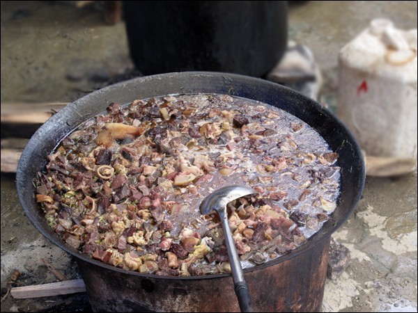 Nguyên liệu để tạo nên món ăn độc đáo này bao gồm tiết đông, sụn, thịt, đuôi, bạc nhạc, lục phủ ngũ tạng…và đặc biệt là phần ruột non có chứa phân non của bò hoặc dê. Món nậm pịa bưng ra có một màu nâu sền sệt, trông không được bắt mắt, vị lại khá khó ăn với những người ăn lần đầu. Nhưng khi ăn quen rồi sẽ thấy được vị ngọt của thit xương và vị đăng đắng nơi cuống lưỡi của pịa. Nậm pịa ăn kèm với thịt luộc, rau chuối hoặc rau bạc hà, thêm chút cay nồng từ rượu là đúng chuẩn vị của vùng cao Tây Bắc.