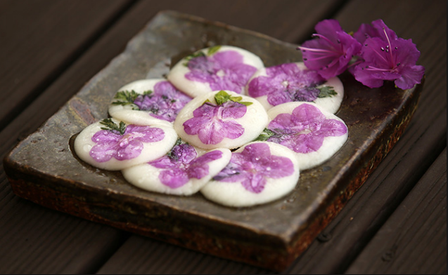 Thêm một bất ngờ cho bạn khi du lịch Hàn Quốc chính là hoa đỗ quyên không chỉ để ngắm mà còn được người Hàn dùng để chế biến món ăn, qua đó bạn có thể thấy được cách mà người Hàn trân trọng những gì mà thiên nhiên ưu ái ban cho họ. Theo truyền thống của người Hàn Quốc vào ngày 3/3 người Hàn sẽ ăn bánh gạo và uống nước hoa đỗ quyên để có thể cảm nhận hương vị của mùa xuân bằng mọi giác quan. Bánh gạo hoa đỗ quyên là món ăn được làm từ thành phần chính là bột nếp và mật ong. Khi làm bánh hoa đỗ quyên đòi hỏi sự khéo léo và tinh tế của người phụ nữ, nếu như không khéo léo sẽ làm mất đi màu sắc cũng như tính thẩm mỹ của món ăn, khi thưởng thức món bánh hoa đỗ quyên truyền thống bạn sẽ cảm nhận được nét tinh tế trong ẫm thực Hàn Quốc.