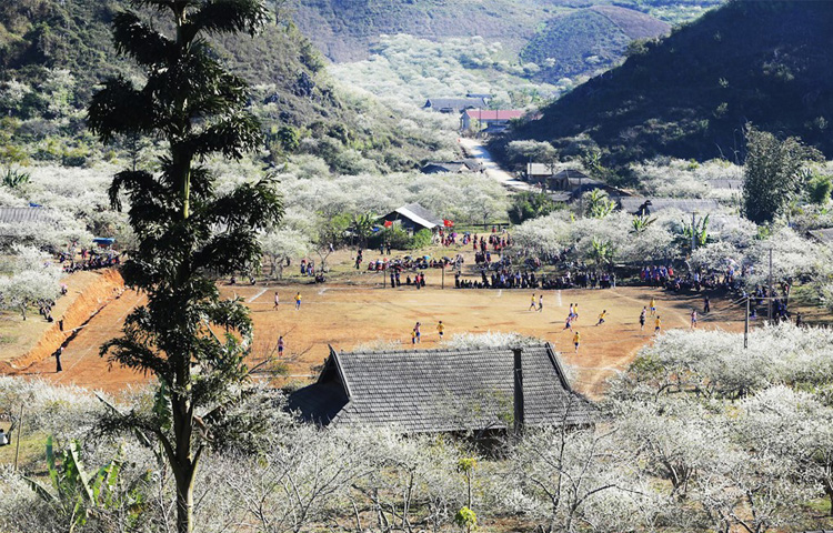 Chẳng ngoa thì nói rằng thung lũng mận Nà Ka đẹp tựa chốn thiên đường nơi lưng chừng trời đất. Những ai có cơ hội đến với Nà Ka vào dịp cuối năm mới cảm nhận hết được nét đẹp rực rỡ của vùng đất này. Một thung lũng rộng trải dài với sắc trắng bạt ngàn của những nhành hoa mận đã trổ mình đơm bông; đan xen là những chồi xanh mơn mởn của những mầm non mới nhú, tạo nên bức tranh màu sắc muôn màu đẹp tuyệt vời trong ánh nắng sớm mai. Du khách không chỉ cảm nhận nét đẹp ấy qua cái nhìn bằng đôi mắt mà còn tận hưởng đủ đầy mùi hương và sự ngọt ngào trong khung cảnh bao la rộng lớn của đất trời Tây Bắc. Tháng 1 là khi những nhành hoa mận bắt đầu nở rộ và đặc biệt khoe sắc rực rỡ nhất là vào tháng 2 hàng năm.