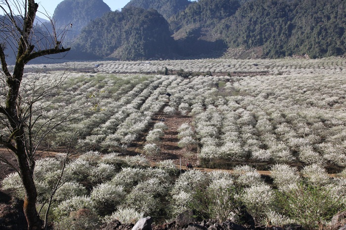 Nà Ka nằm cách thị trấn nông trường Mộc Châu chỉ chừng 16km, ngay trên con đường đi qua xã Tân Lập – nơi có những đồi chè trái tim tuyệt đẹp. Nà Ka trong niềm tự hào của người dân Mộc Châu và ấn tượng của du khách gần xa, nơi đây chẳng khác gì một xứ sở thần tiên nơi mặt đất, với không gian của hàng trăm hecta mận hậu, đặc biệt là khi đông qua xuân tới; những nhành hoa mận bắt đầu nở rộ, mang sắc trắng phủ khắp đất trời Mộc Châu. Càng đứng trên cao phóng tầm mắt xuống càng cảm nhận được nét đẹp rực rỡ của nơi này, trắng muốt, kiêu sa, lại lung linh và nhẹ nhàng trong nắng sớm. Nét đẹp ấy cứ như trải dài bất tận, xuyên qua không gian và thời gian chạm đến đáy tâm hồn mỗi du khách.