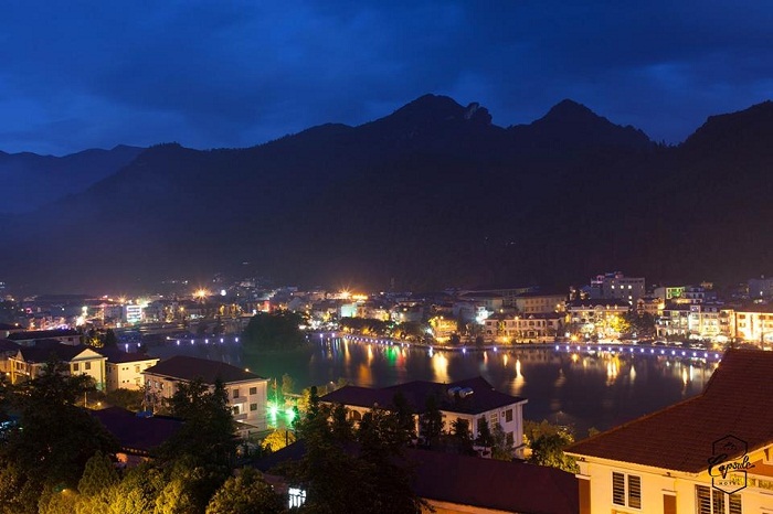 Ngắm nhìn tòan cảnh sapa về đêm từ khách sạn con nhộng