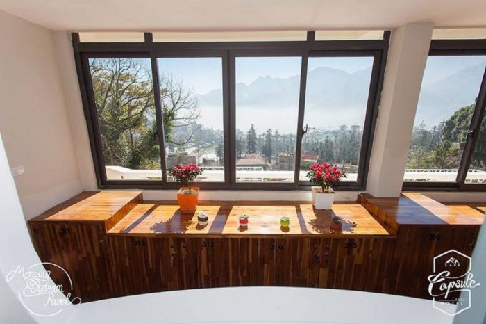 Khách sạn con nhộng còn có ban công rộng, từ nơi đây du khách có thể quan sát khung cảnh thiên nhiên tươi đẹp. Tận hưởng những giây phút thư thái khi ngắm nhìn Sapa được bao phủ giữa bốn bề núi non hùng vỹ dưới làn mây mờ mờ ảo ảo sẽ mang lại cho du khách cảm giác như lạc vào chốn bồng lai tiên cảnh.
