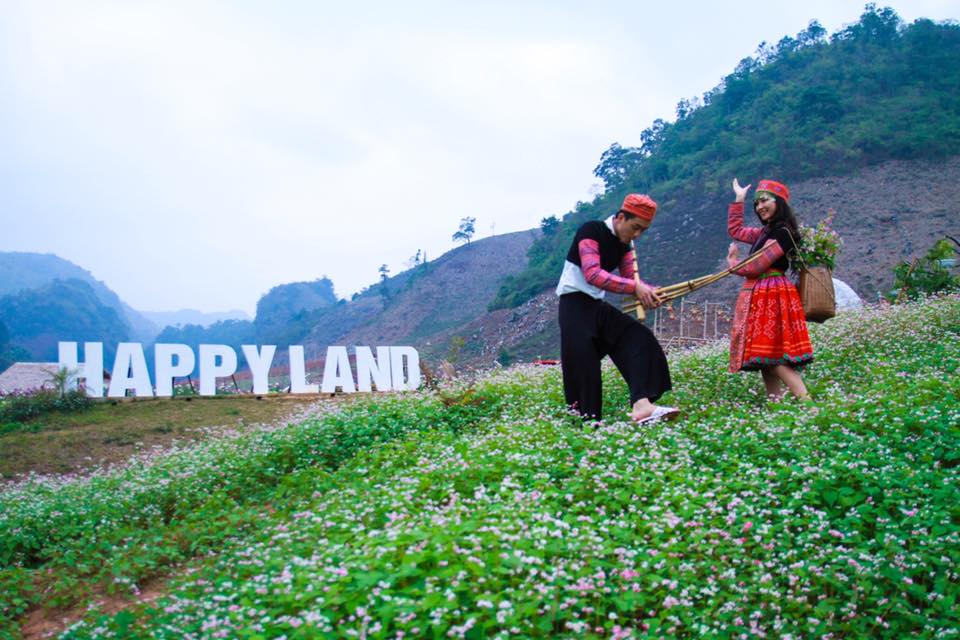 Chào đón du khách bằng ấn tượng đầu tiên vô cùng đặc biệt, một thảm hoa hình trái tim độc đáo rộng tới hơn 5ha cùng rất nhiều loài hoa lần đầu tiên xuất hiện với đủ các màu sắc rực rỡ nhất, chia thành các khu chụp ảnh đẹp khác nhau; mang đến cho Happy Land danh hiệu nơi có vườn hoa đẹp nhất Mộc Châu.