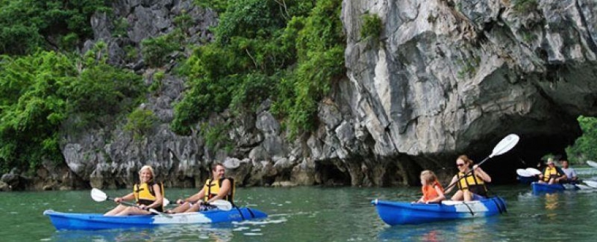 17h-18h: Du thuyền khởi hành về nơi neo đậu tại khu vực Hang Nac. Tại đây, du khách có thể chèo thuyền Kayak, tham gia lớp học nấu ăn hoặc nghỉ ngơi thư giản trên tàu Annam Junk.