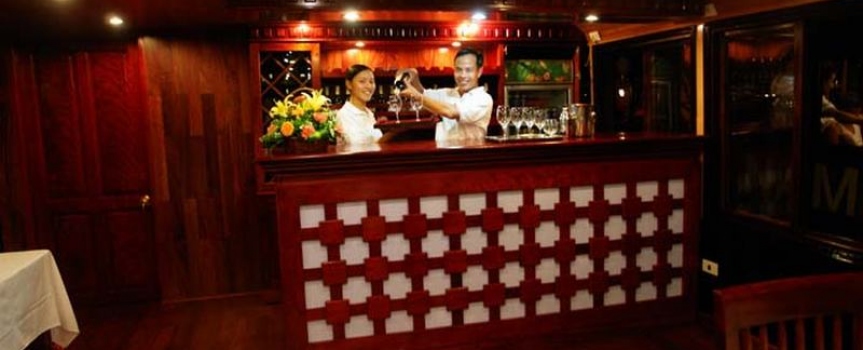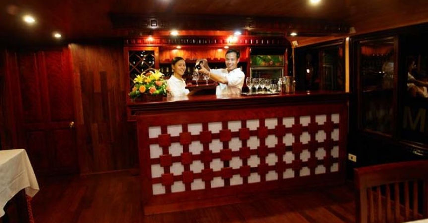 12h30: Đoàn đến Hạ Long, thưởng thức cocktail chào mừng và nghe chỉ dẫn an toàn do Thuyền trưởng hướng dẫn, sau đó làm thủ tục nhận phòng