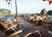 17h-18h: Du thuyền khởi hành về nơi neo đậu tại khu vực đảo 690. Tại đây, quý khách có thể chèo thuyền Kayak, tham gia lớp học nấu ăn hoặc nghỉ ngơi thư giản trên tàu Annam Junk.