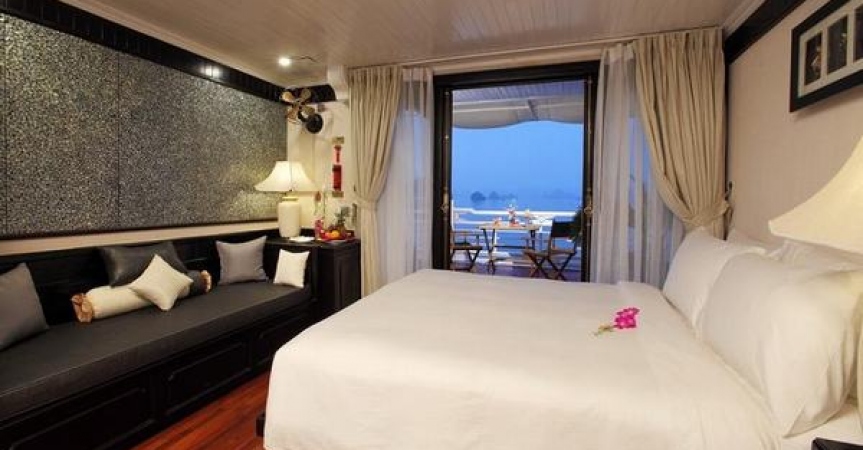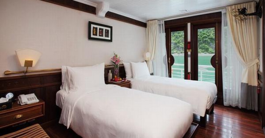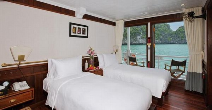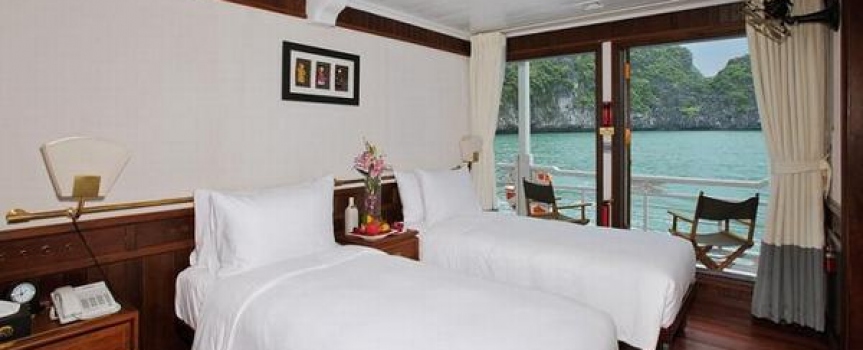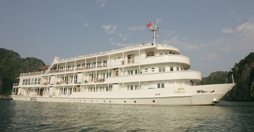 12:45 Xe đến cảng Tuần Châu, Quý khách nhận phòng trên Du thuyền Âu Cơ, thưởng thức tiệc cocktail chào mừng và nghe thuyền trưởng giới thiệu chương trình