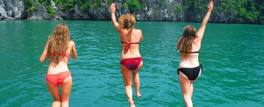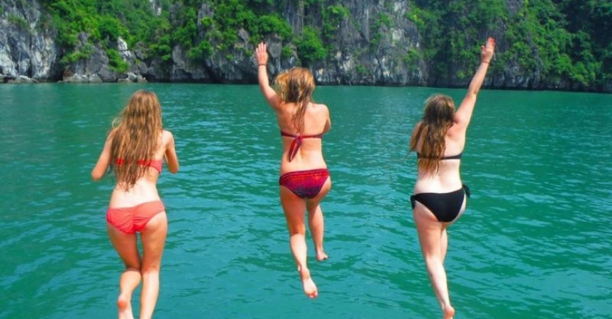 16.30 – 17.30: Tàu đưa du khách vào bãi biển Titop: lên thăm đảo, trèo lên đỉnh núi Titop có độ cao hơn 200m để ngắm toàn cảnh Hạ Long và tắm biển tại bãi cát Titop.