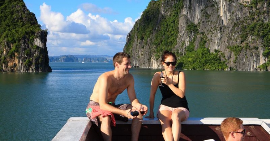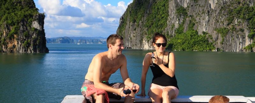 18.00 Du khách về tàu nghỉ ngơi, thư giãn hoặc có thể ngắm cảnh hoàng hôn trên Vịnh