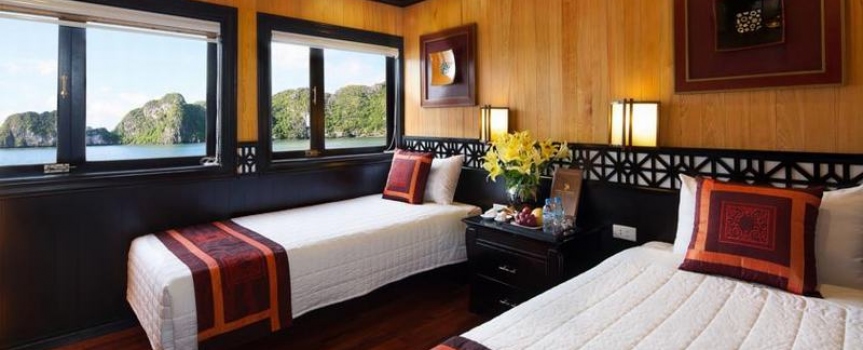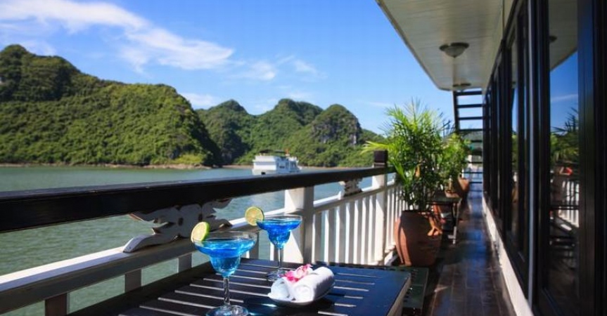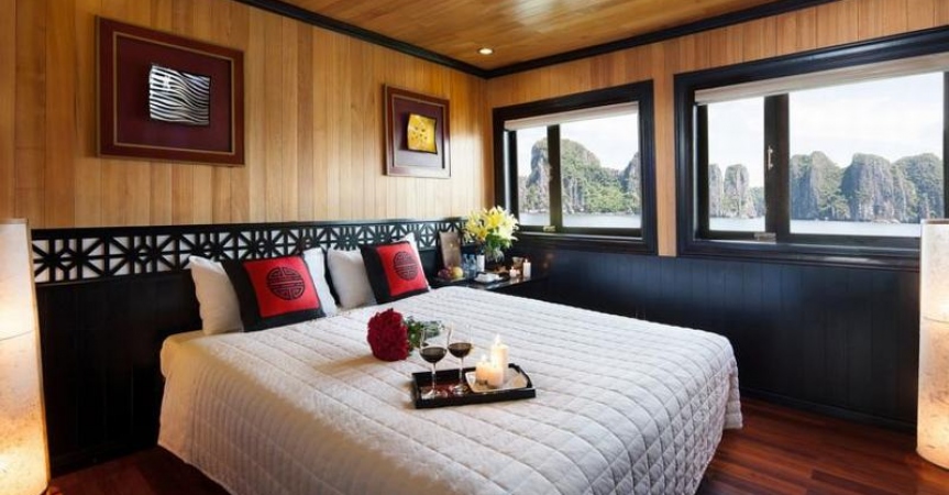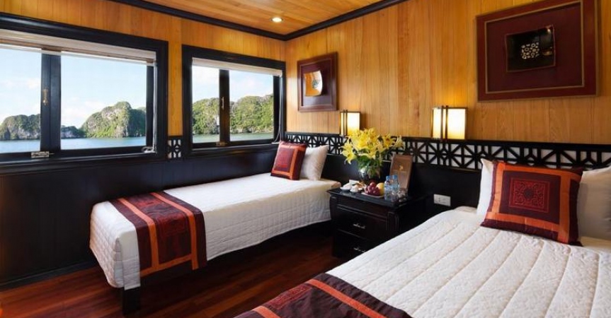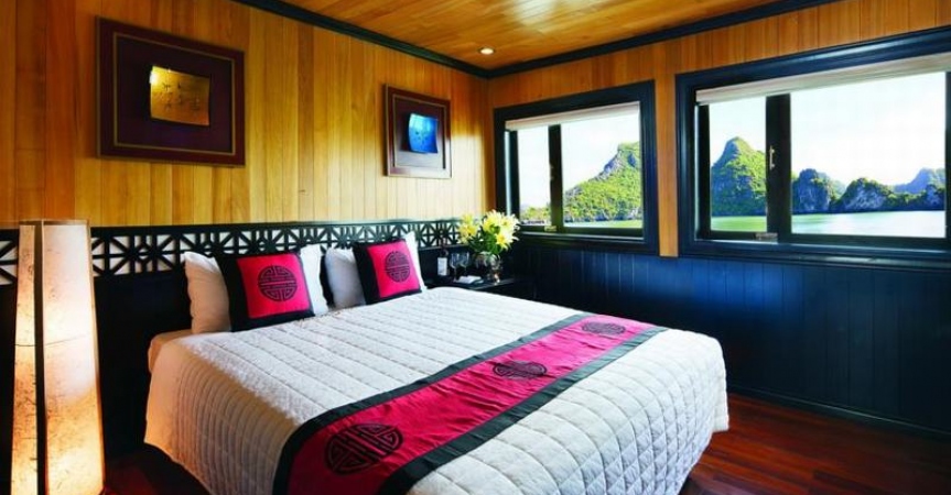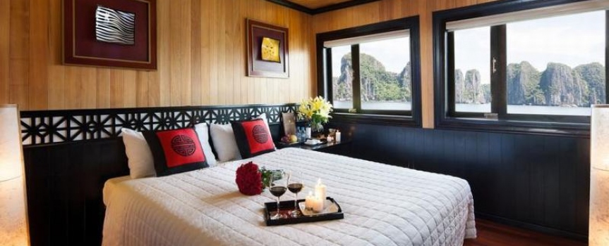 Khách ăn trưa với các món ăn địa phương theo thực đơn có sẵn và chiêm ngưỡng các thắng cảnh nổi tiếng tại Vịnh Hạ Long như hang Đầu gỗ, hòn Gà Chọi….