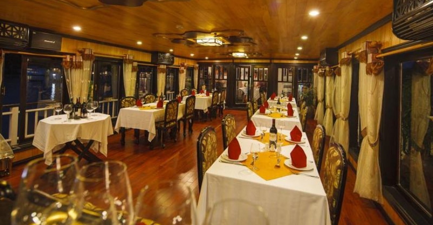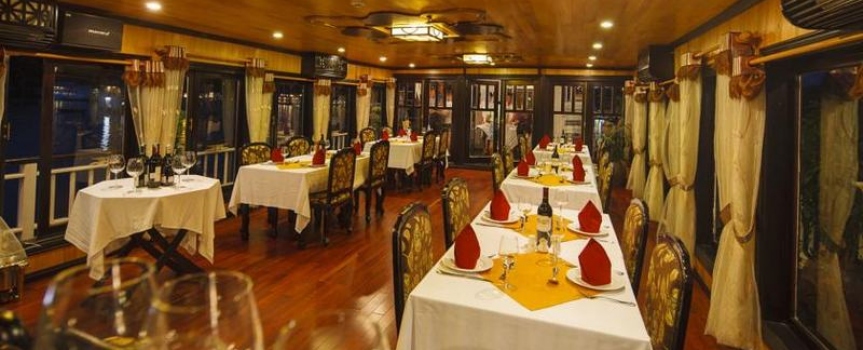 12:00 – 13.30: Sau đó, du khách trở về tàu nghỉ ngơi . Thưởng thức bữa trưa với thực đơn có sẵn