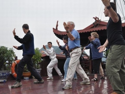 6h00 - 7h00: Quý khách tham gia khóa "Thái Cực Quyền" trong 30 phút, sau đó thưởng thức bình minh trên vịnh, đó hẳn là quãng thời gian đáng quý để chiêm nghiệm và cảm nhận cảnh đẹp huyền bí của Vịnh Hạ Long.