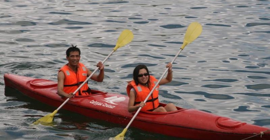 Lựa chọn 1: Quý khách sau khi được đưa ra vịnh Lan Hạ sẽ chèo kayak thăm cảnh vịnh, đi vào những hang nước khác vô cùng thú vị.