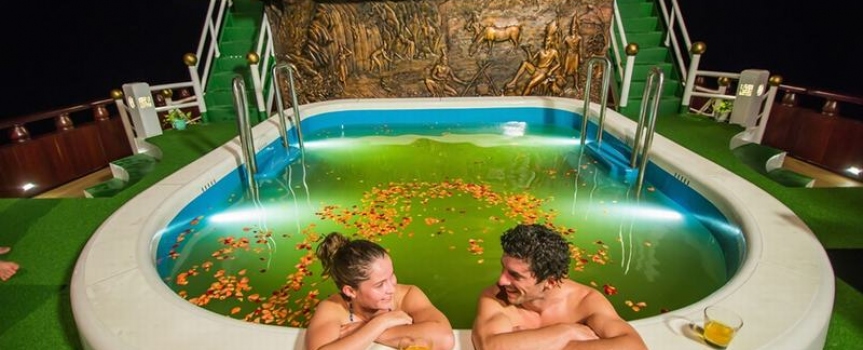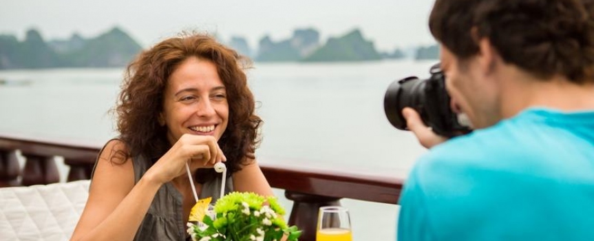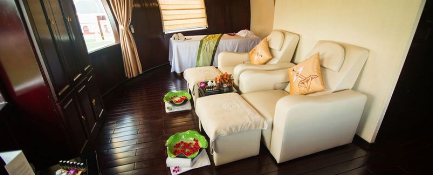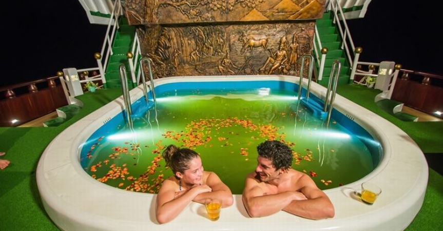18h00 : Quý khách quay lại tàu để nghỉ ngơi, thư giãn và chuẩn bị thưởng thức bữa tối do đầu bếp trên tàu phục vụ.
