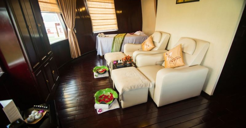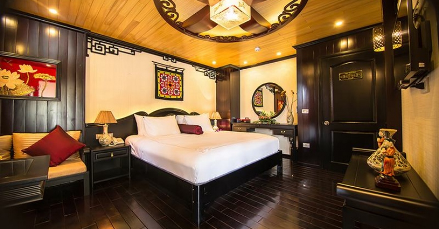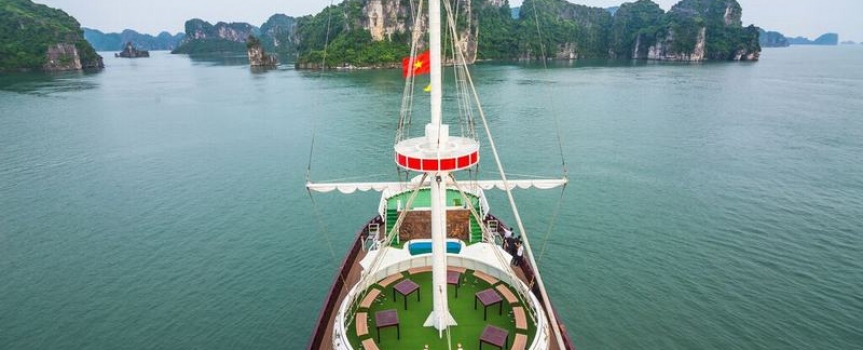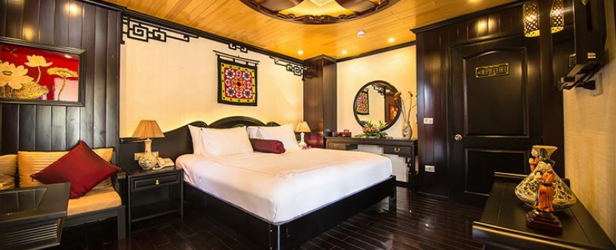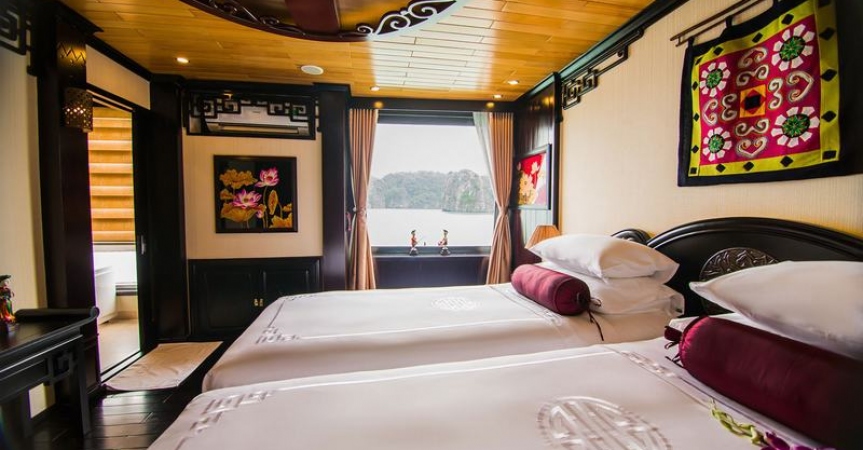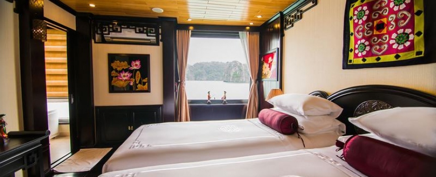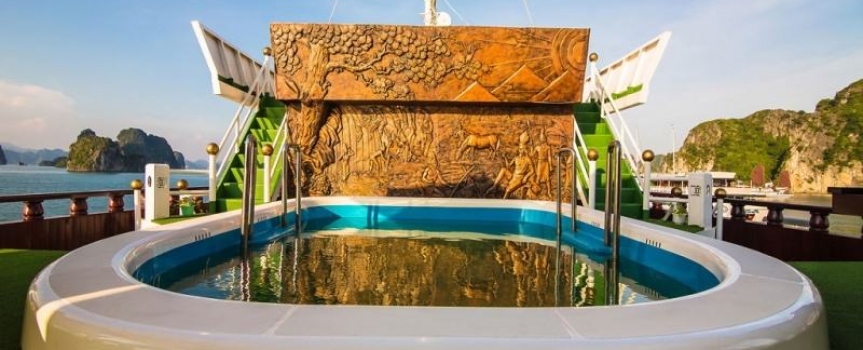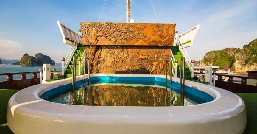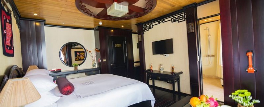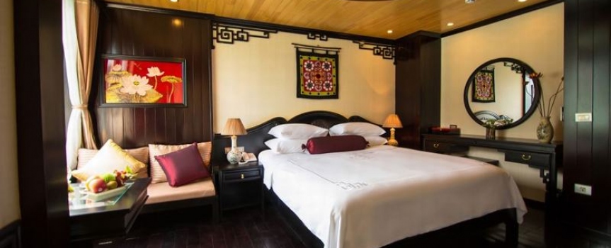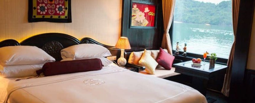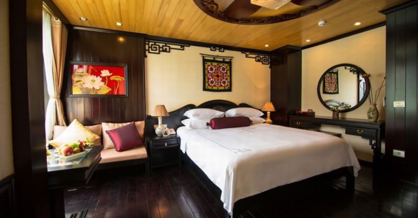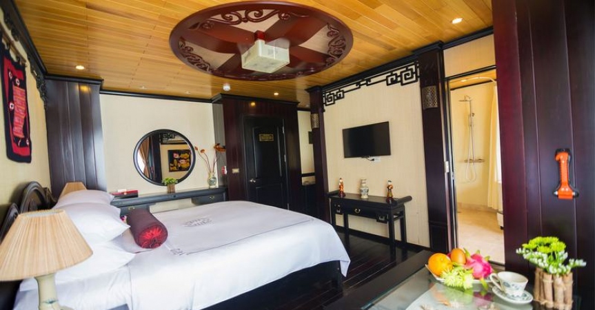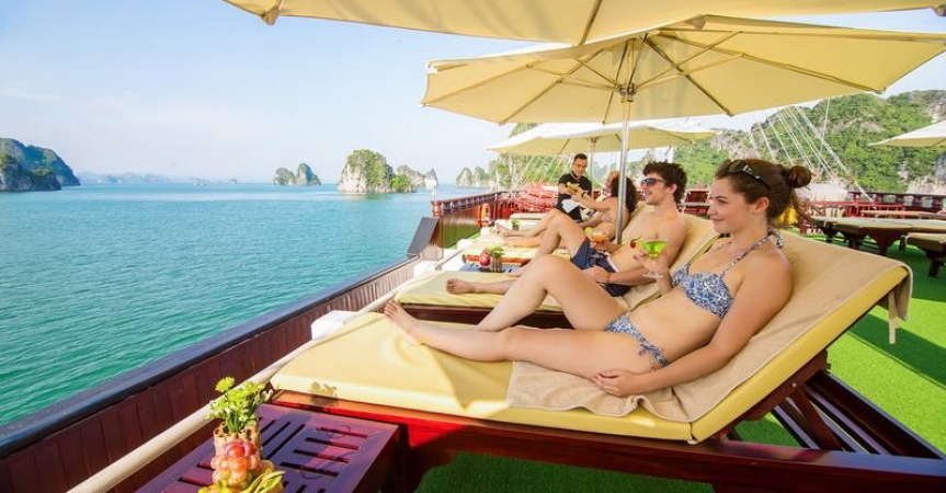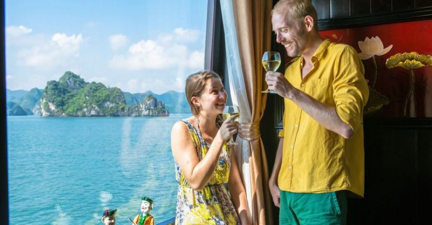 12h45 : Quý khách lên tàu, thưởng thức đồ uống chào mừng do các thủy thủ tàu Dragon Pearl phục vụ, nhận phòng trên tàu.