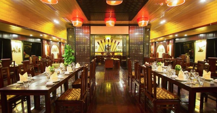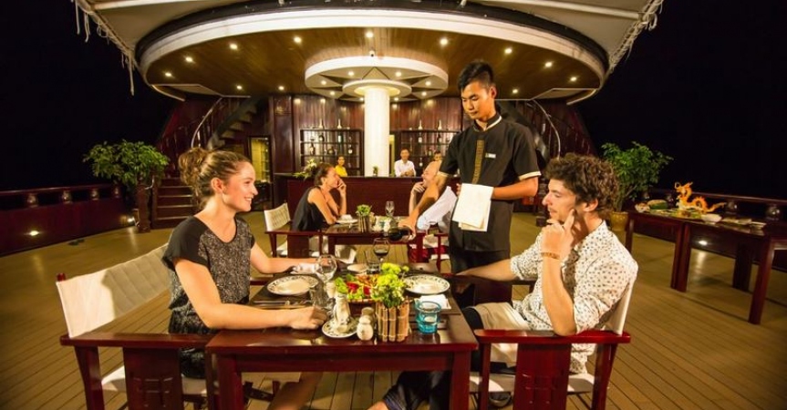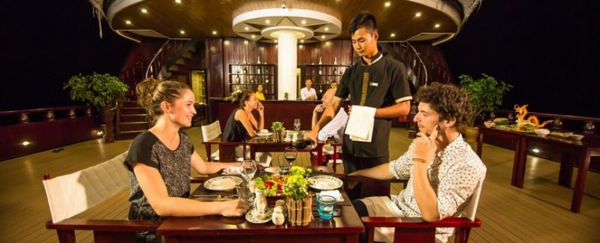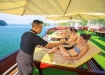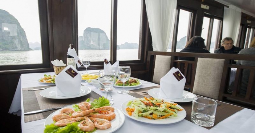 19h00 - 20h00 : Quý khách ăn tối trên tàu với nhiều món hải sản hấp dẫn.