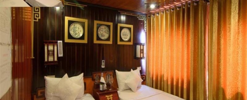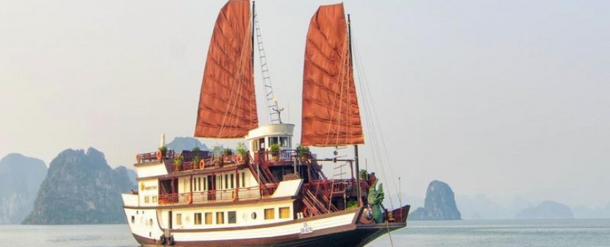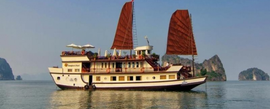 12.30-13.00: Quý khách làm thủ tục lên thuyền, Thưởng thức ly rượu, nước hoa quả chào mừng trong khi thuyền trưởng, hướng dẫn viên trên Du thuyền trình bày cụ thể về hành trình 3 ngày 2 đêm. Quý khách nhận phòng, nghỉ ngơi. Du thuyền dần dần rời bến, bắt đầu hành trình khám phá Di sản thiên nhiên thế giới Vịnh Hạ Long.