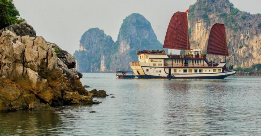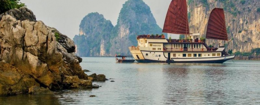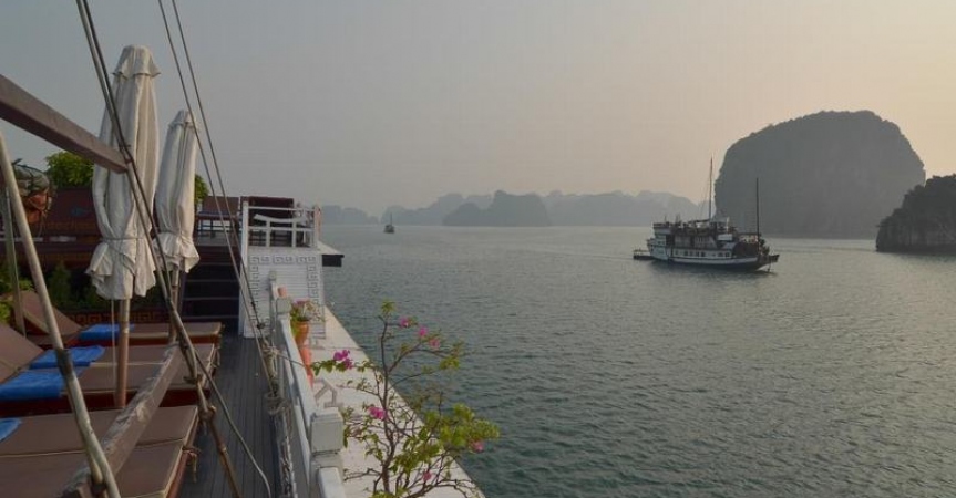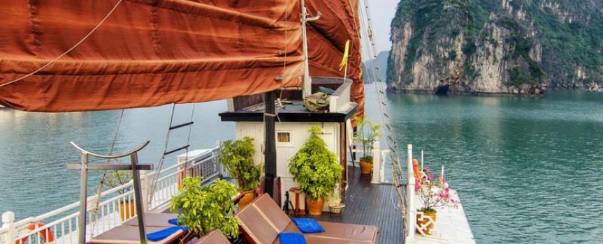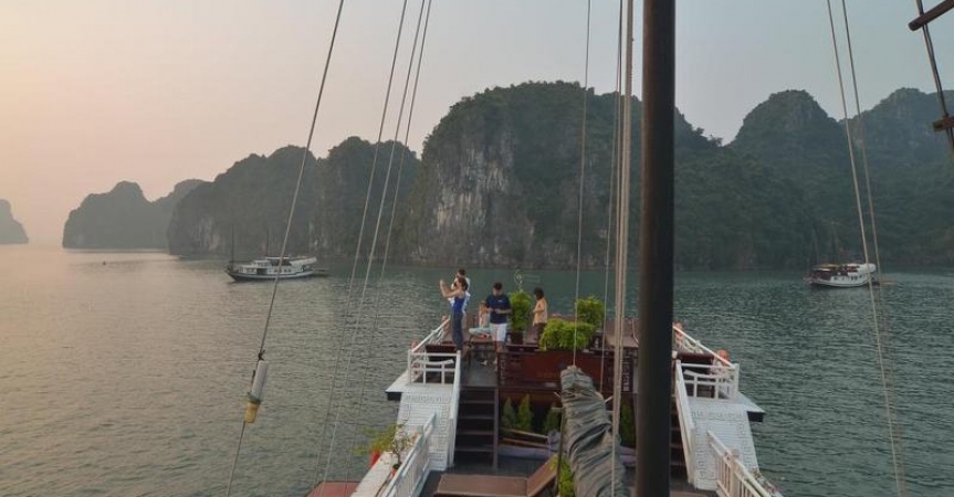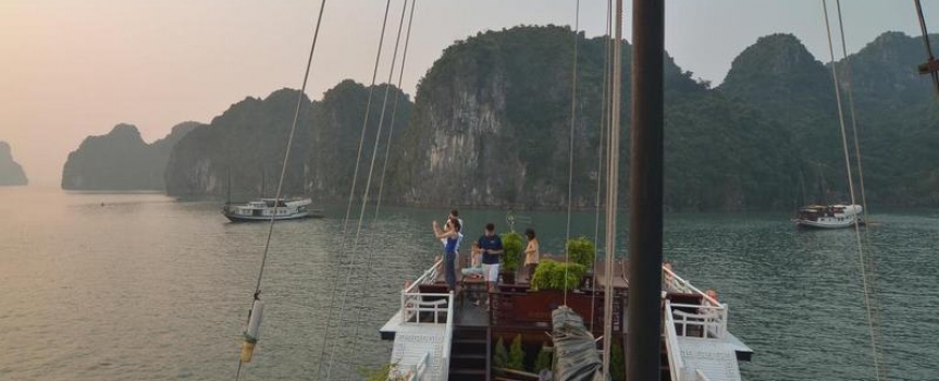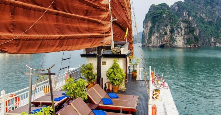 16.15-19.00: Về du thuyền để thư giãn trong khi đi tới khu vực Cống đỏ. Ngắm hoàng hôn ở Vịnh Hạ Long