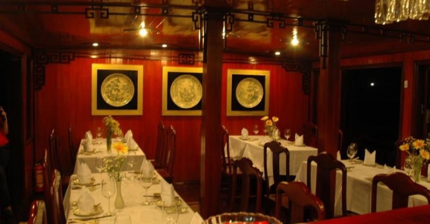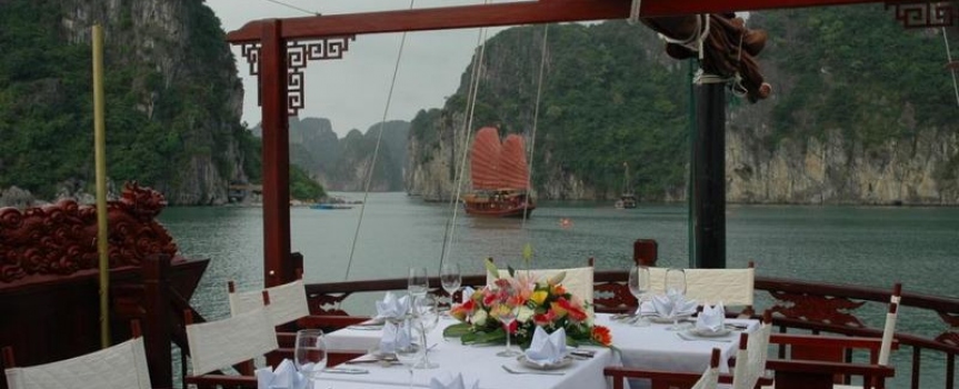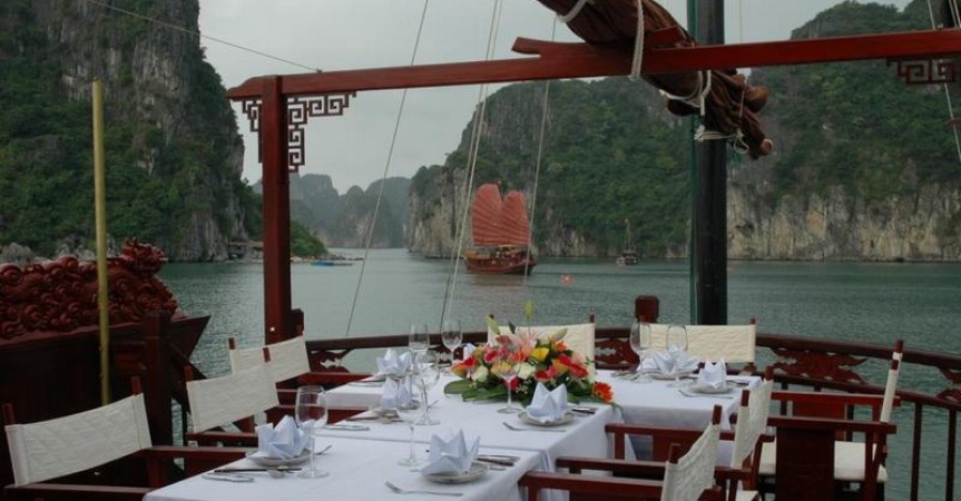 13.30 - 15.00: Quý khách ăn trưa trong khi du thuyền di chuyển tới vịnh Bái Tử Long; đồng thời chiêm ngưỡng cảnh đẹp trên chuyến đi.