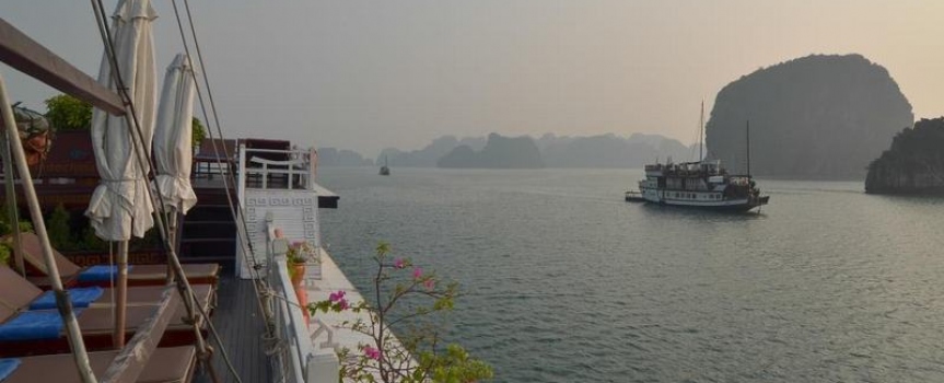 08.00 - 08.30: Thưởng thức không khí trong lành và làn gió nhẹ nhàng của vịnh vào buổi sáng. Ăn sáng trên tàu.