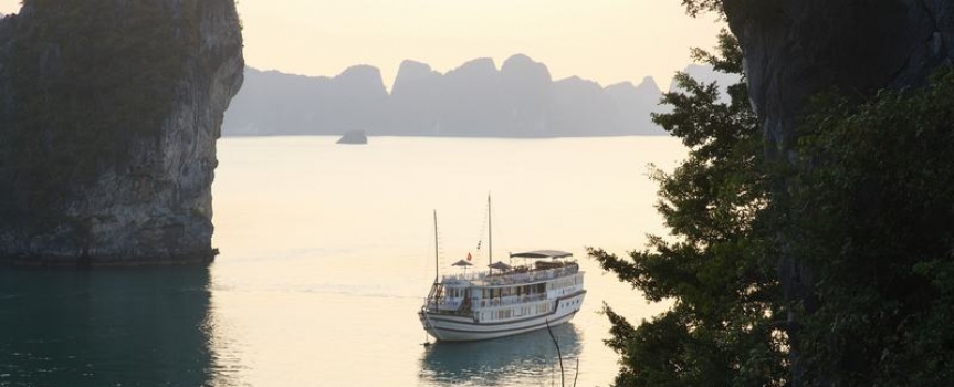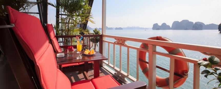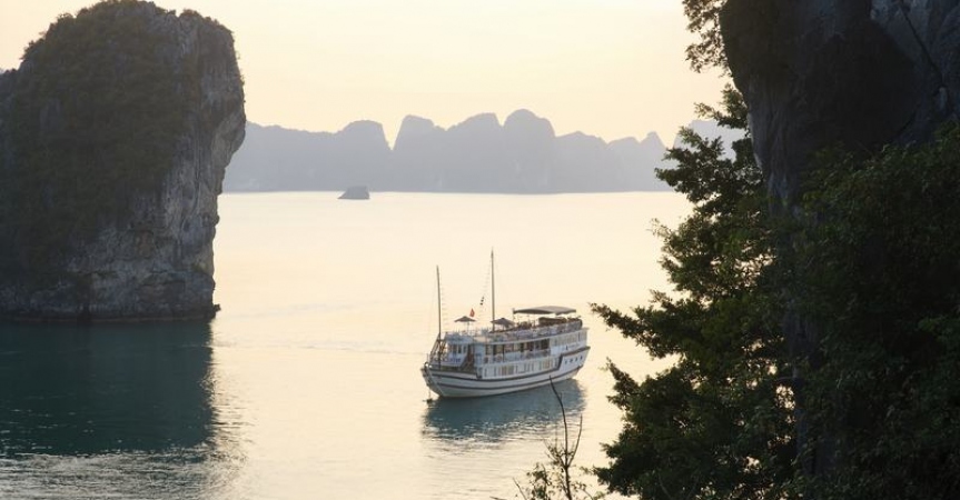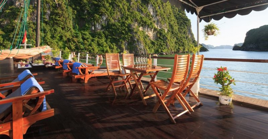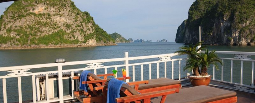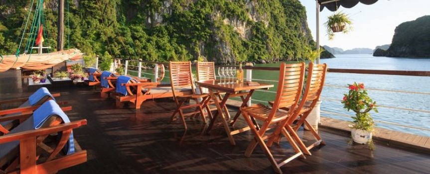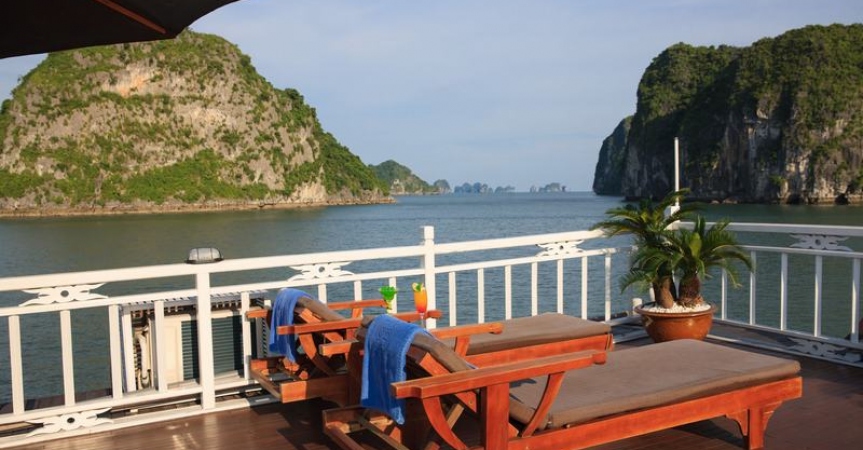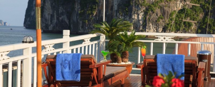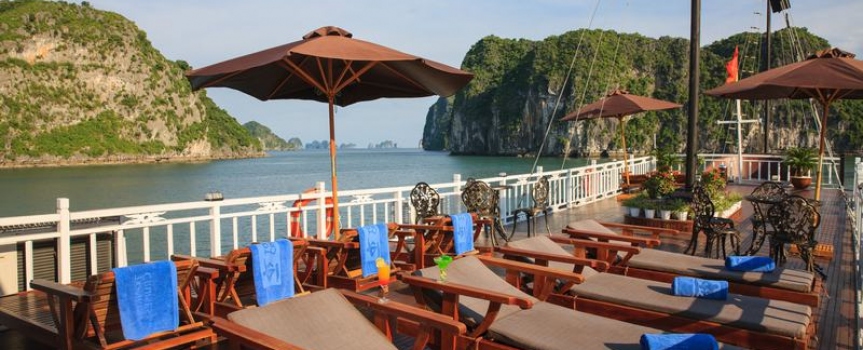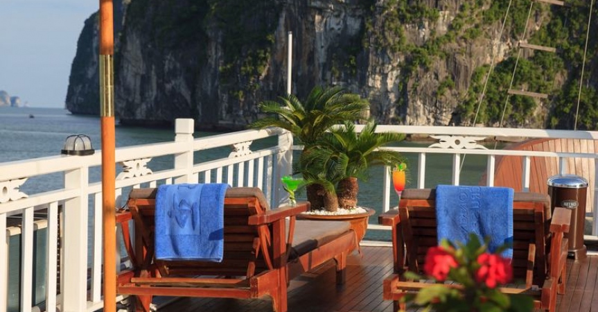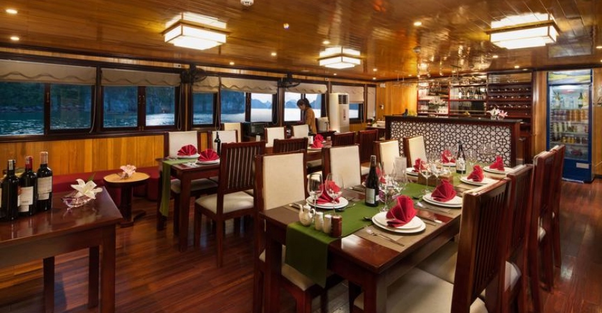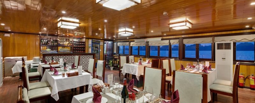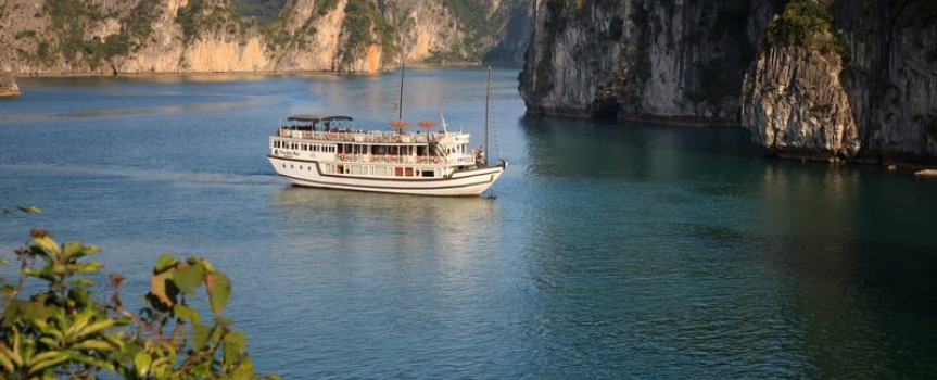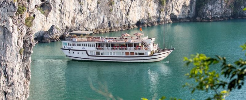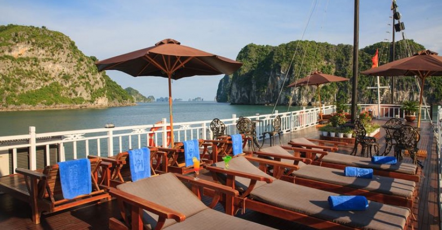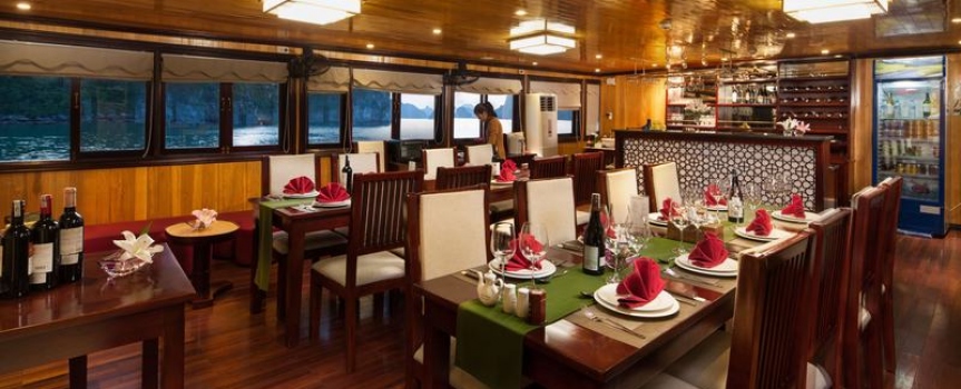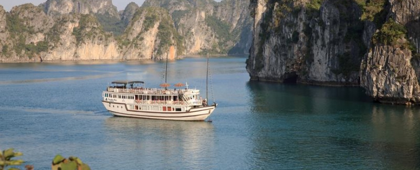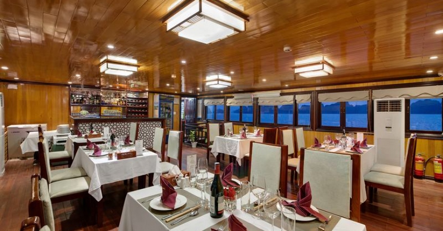 13:30: Bữa trưa được phục vụ tại nhà hàng trong khi tàu đưa quý khách đi tham quan quanh vịnh Bái tử Long