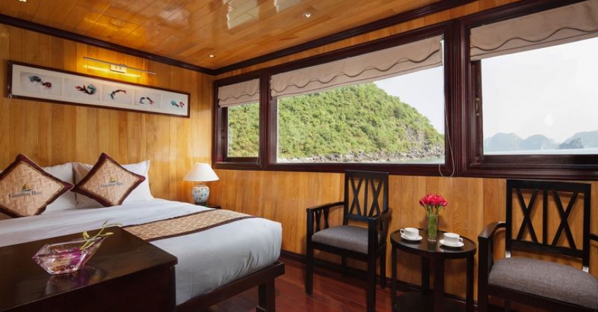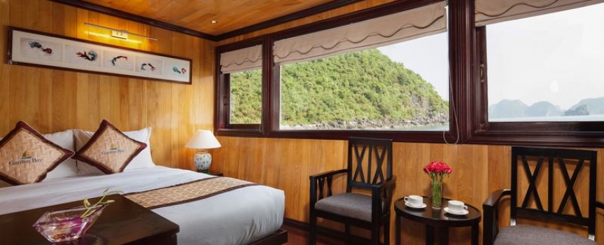 16:00: Quý khách trở lại tàu Garden Bay Luxury. Nghỉ ngơi, ăn tối và ngủ đêm trên tàu.