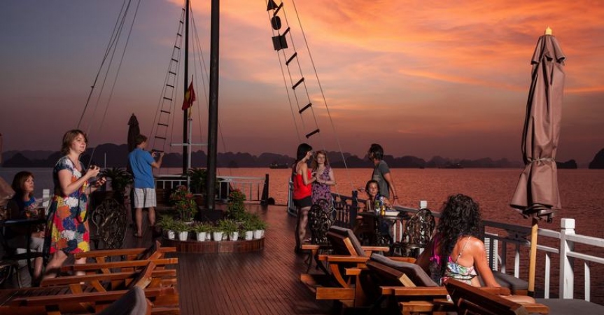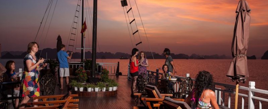 17:30: Thư giãn và thưởng thức tiệc cocktail nhẹ đón hoàng hôn trong khi thuyền di chuyển về khu vực ngủ đêm Cống Đỏ.