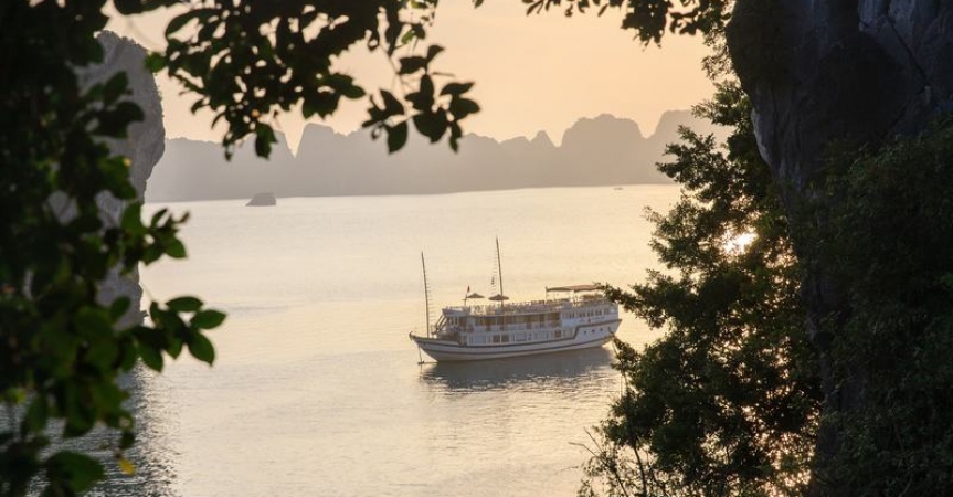 6:00: Quý khách dậy sớm, ngắm bình minh trên vịnh Hạ Long và tham gia bài tập Dưỡng sinh Taichi cùng quản lý tàu .