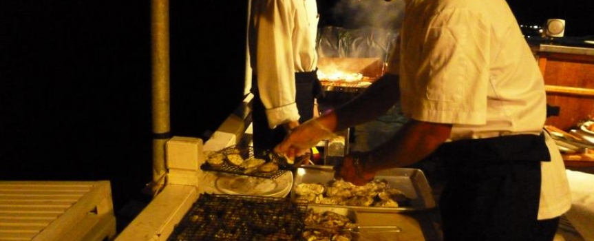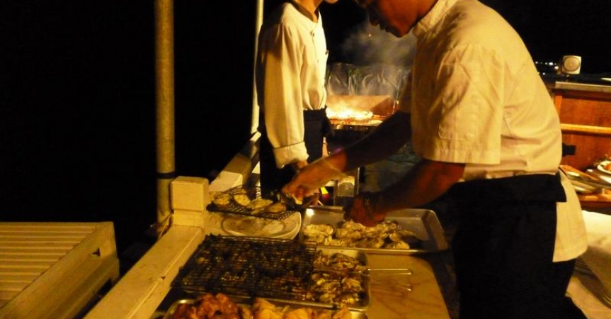 12:30: Bữa trưa ngon miệng được phục vụ cùng với hải sản và món nướng