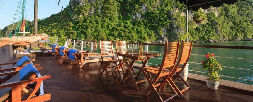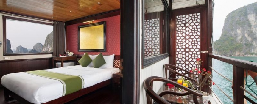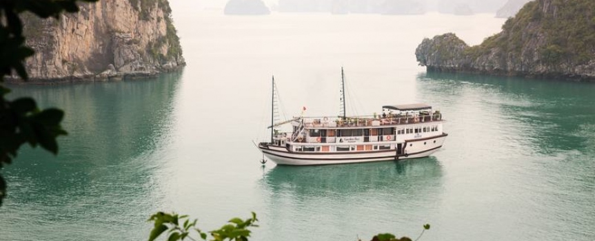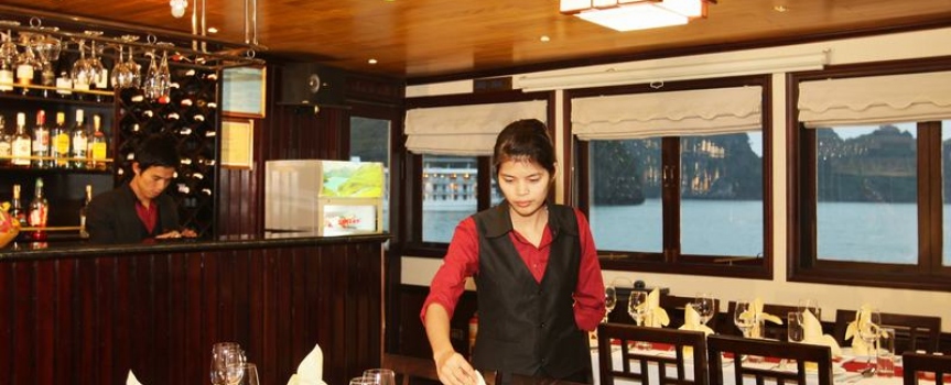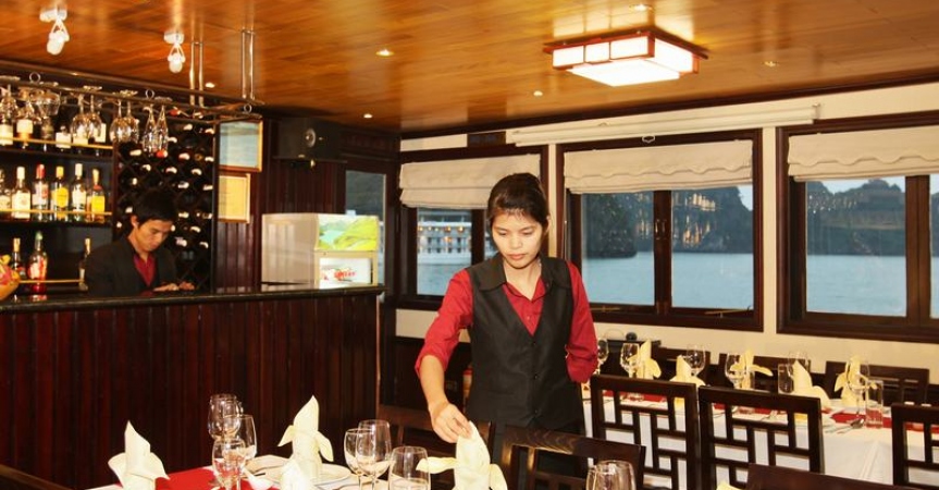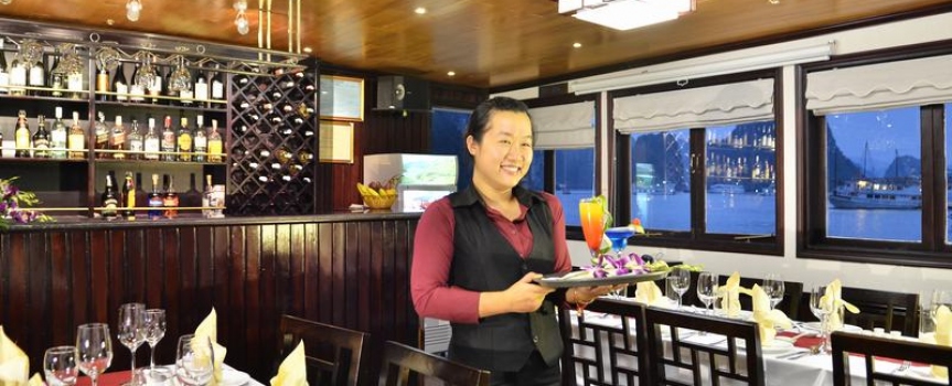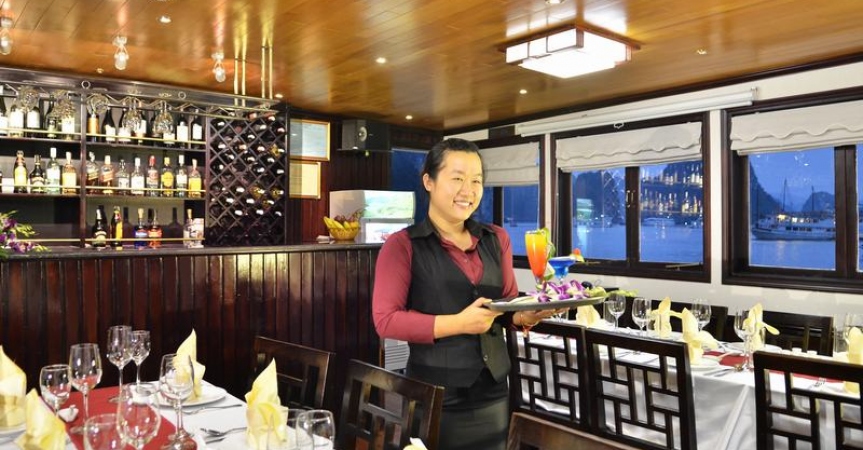 13:30: Bữa trưa được phục vụ tại nhà hàng trong khi tàu đưa quý khách đi tham quan quanh vịnh Bái tử Long