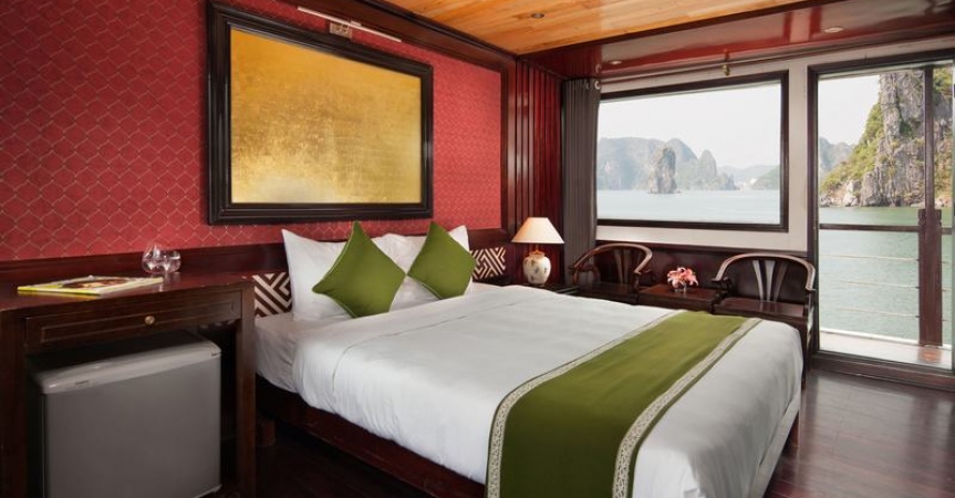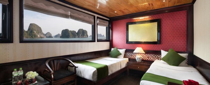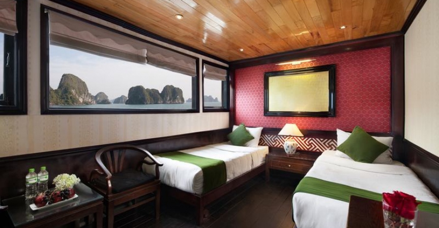 Các cabin của du thuyền Garden Bay Premium đều rất sang trọng, được trang bị đầy đủ tiện nghi với giường đệm êm ái, với cửa sổ nhìn ra Vịnh Hạ Long đẹp kì ảo. Phòng lát sàn gỗ cùng với nội thất gỗ tạo cảm giác ấm cúng. Màu sắc tươi sáng giúp du khách luôn cảm thấy thư thái, thoải mái.